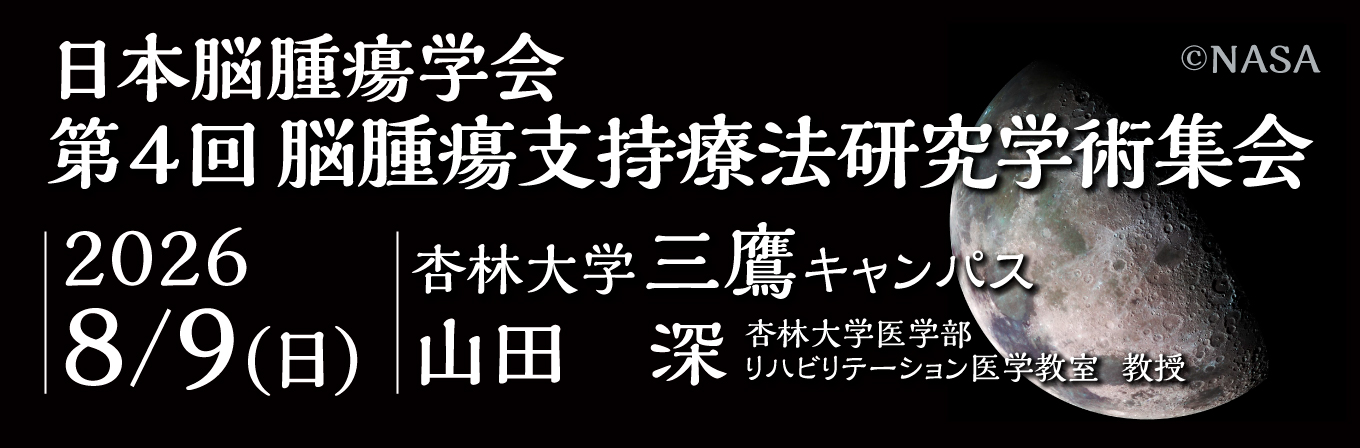 - 第4回脳腫瘍支持療法研究学術集会(2026年8月9日(日)杏林大学三鷹キャンパス、会長:杏林大学医学部リハビリテーション医学教室 教授 山田 深先生)の演題登録受付が開始されました。